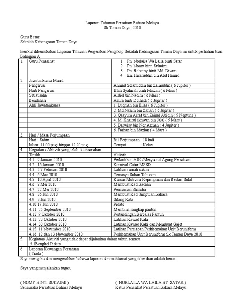 Laporan Tahunan Persatuan Bahasa Melayu 2010 Pdf