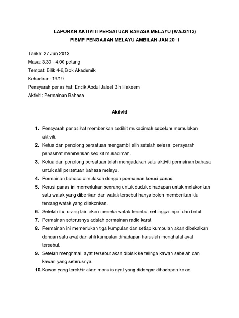 Perancangan Aktiviti Persatuan Bahasa Melayu 2015 Pdf